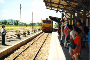 - Standing on "Death Railway" track |