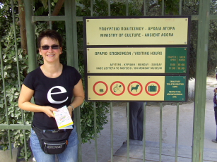 - Kerstin at entrance of Ancient Agora |