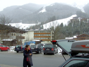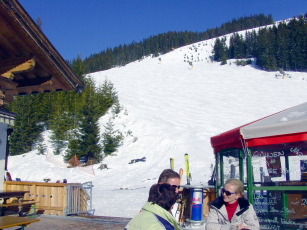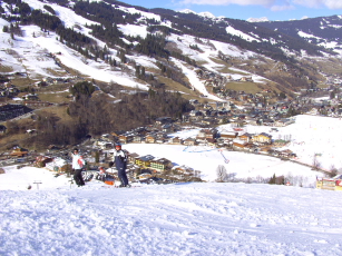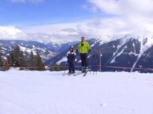 - Kerstin & Salina downhill and view to Hinterglemm |