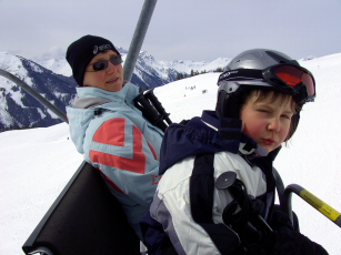 - Kerstin & Salina seated in chair lift Hochalmbahn |