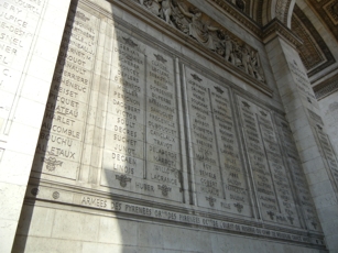- Names of the military leaders inscribed under the Arch of Triumph |