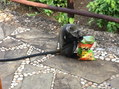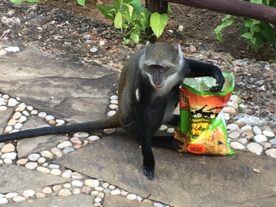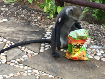 - Sneaky monkey stole potato chips |