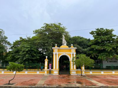 - Statue at Camellón de los Mártires Square
