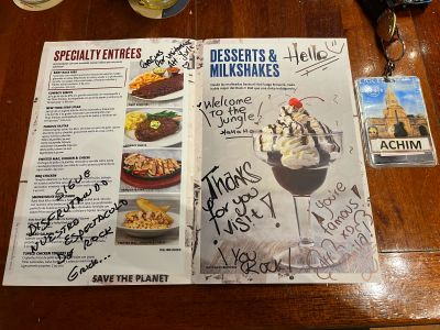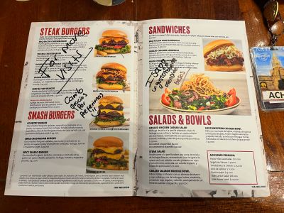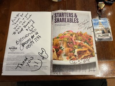 - Menu autographed by all staff presented for my 277th HRC visit